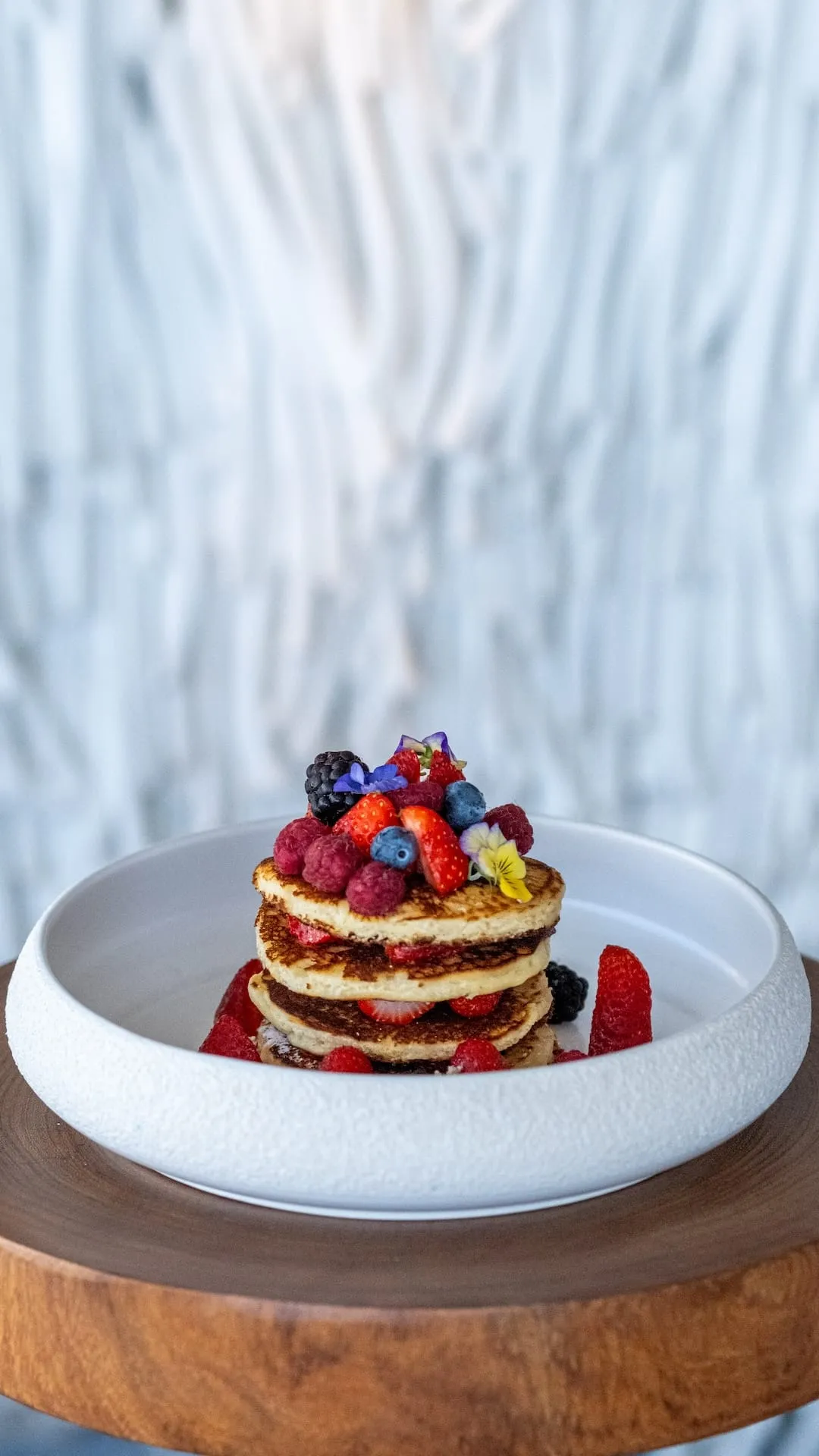 Our menu is inspired by traditional Greek recipes, reimagined with a modern twist and crafted using fresh, seasonal ingredients. From artisanal breads and local cheeses to delicate egg dishes and fruit-forward creations, every plate is designed to complement the view.